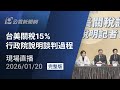 | 314 |  | TVBS選新聞 | 2026-01-20 08:59:51 | 【LIVE】台美關稅15%定案 卓榮泰鄭麗君說明細節 泛藍 | 10 |