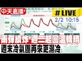 | 908 |  | 中天電視 | 2026-02-02 08:55:41 | 【中天直播#LIVE】雨彈續炸 週二起回溫轉晴 週末冷氣團再來更濕冷 20260202 @中天新聞CtiNews 泛藍 | 32 |