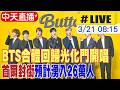 | 157 |  | 全球大視野 | 2026-03-21 08:12:02 | 【中天直播 #LIVE】BTS合體回歸光化門開唱 首爾封街預計湧入26萬人 現場最新 20260321 @全球大視野Global_Vision 社論 泛藍 泛紅 中國立場 | 12 |