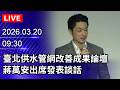 | 391 |  | 民視新聞網 Formosa TV News network | 2026-03-20 12:29:23 | 【直播完整版】0320 因應中東變局中央祭政策穩物價! 行政院長卓榮泰立院施政報告備詢|民視快新聞| 泛綠 | 11 |