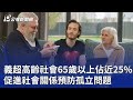 | 41 |  | 公視新聞網 | 2026-03-20 20:36:13 | 義超高齡社會65歲以上佔近25% 促進社會關係預防孤立問題|20260320 公視晚間新聞 | 16 | 1 | 0 |