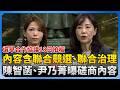 | 36 |  | 少康戰情室 TVBS Situation Room | 2026-03-18 17:44:52 | 【全程CC字幕】尹乃菁:藍白合是建立聯合治理的典範!引柯文哲話「藍白聯手不但走得快還走得遠更走得穩」陳智菡:絕對不會視對方為雜質 類似大聯盟概念去打高強度比賽|TVBS新聞 | 2,517 | 42 | 21 |