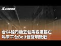 15公視新聞網2026-01-30 14:42:34台64線司機丟包乘客遭輾亡 叫車平台Bolt發聲明致歉|20260130 公視午間新聞22,75556124