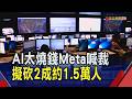 | 38 |  | USTV 非凡電視 | 2026-03-18 20:33:59 | AI搶錢還搶工作! 傳Meta將啟動史上最大裁員 亞馬遜1月也裁掉1.6萬職位 戴爾3年來更砍了3.3萬人 |非凡財經新聞|20260318 | 12,941 | 64 | 4 |