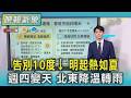 | 282 |  | 鏡新聞 | 2026-03-16 09:07:43 | 未來一週天氣先暖後變! 週三前舒適穩定|#鏡新聞 | 197 | 5 | 0 |