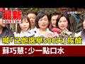 | 251 |  | 台視新聞 TTV NEWS | 2026-03-21 12:01:39 | 喊「已跑選舉500天」挨酸 蘇巧慧:少一點口水【最新快訊】 | 521 | 7 | 6 |