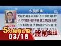 | 54 |  | USTV 非凡電視 | 2026-03-17 08:07:30 | 輝達領軍AI股衝 美光走高3% Sandisk大漲6%!台積電今除息6元 Switch 2新遊戲大賣 台鏈補!美伊戰事 石化鏈面臨斷料危機 |主播鄧凱銘|【5分鐘看台股】20260317|非凡財經新聞 | 15,990 | 175 | 2 | 0.13 |