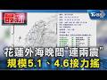 | 48 |  | 台視新聞 TTV NEWS | 2026-03-21 00:36:57 | 花蓮2分鐘內連2震! 規模分別5.1、4.6「17縣市有感」 | 19,856 | 104 | 11 | 0.55 |